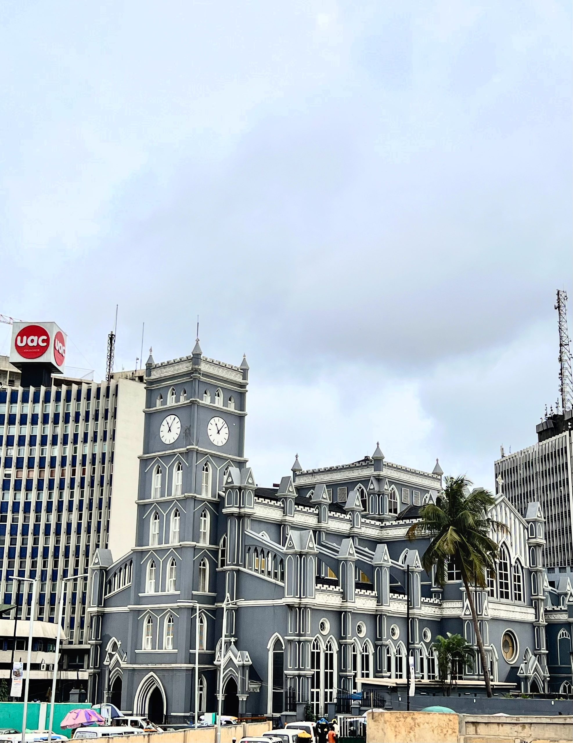 The striking architectural beauty of the Cathedral Church of Christ rises gracefully against a muted sky, its grey stone façade and intricate Gothic spires lending a quiet elegance to the Lagos skyline. Captured from Eko Bridge in Marina, this image reflects a moment that feels almost miraculous, a testament to the irony in the cathedral’s name, as if divine grace aligned every element to make this shot possible.