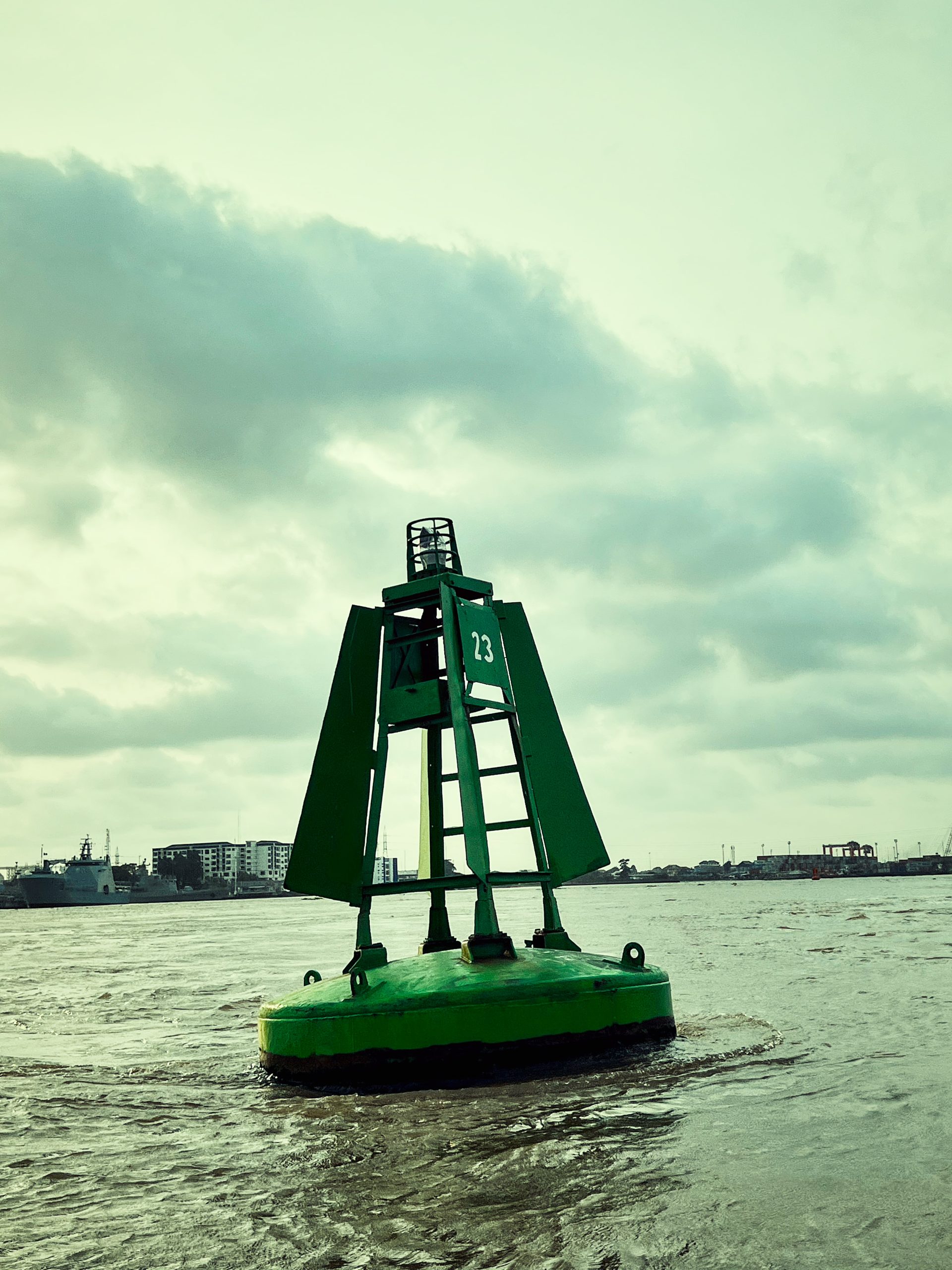 In Signal 23, I was drawn to the solitary buoy standing steadfast amidst the endless ripples of Lagos’ waters. Painted in bold green and numbered with purpose, it felt like a beacon of resilience against the backdrop of muted skies and the sprawling city skyline. Its solitary stance spoke to me of strength and purpose, a symbol of guidance and stability in a vast, unpredictable expanse.